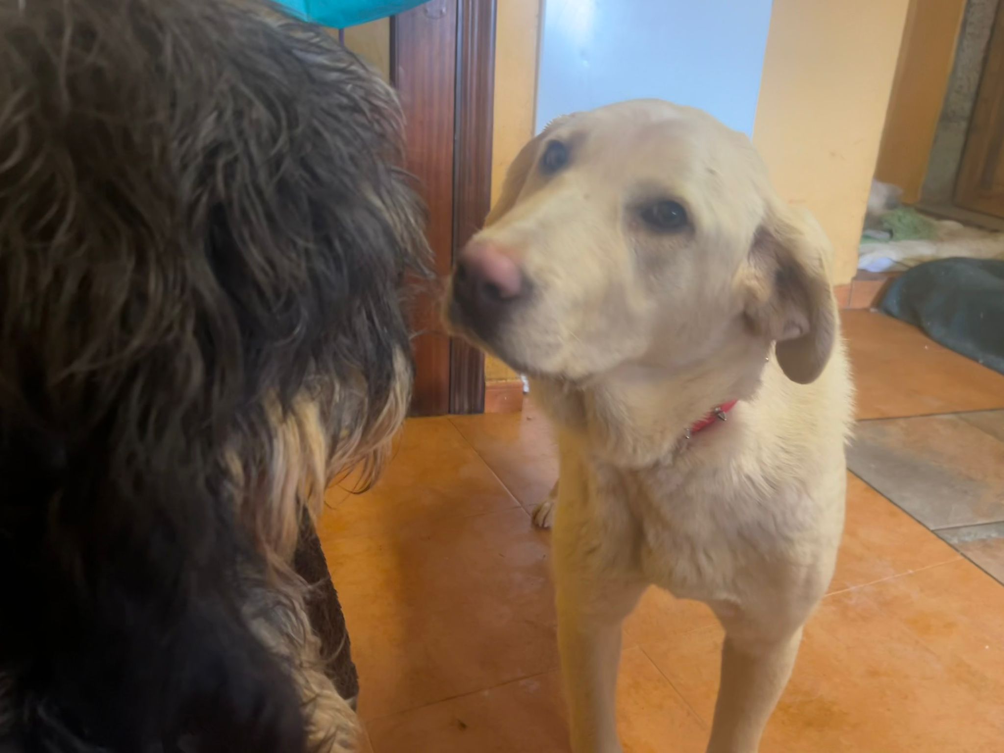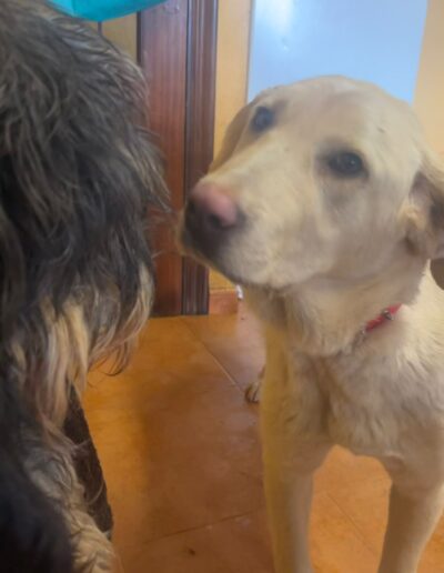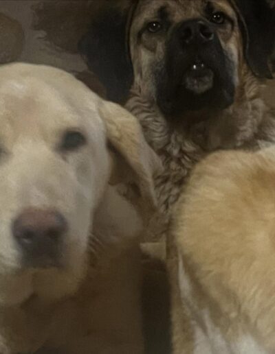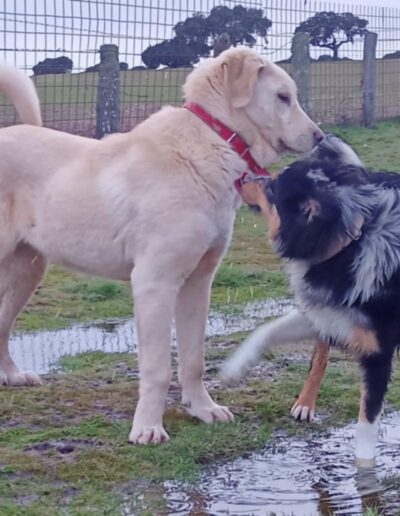 Leyla was rescued as an 8 month old pup from a farmer who was ill-treating her. Leyla joined Daniela’s DDP in Feb 2026 where she showed straight away what a special girl she is, in spite of her horrible treatment by her previous human. Leyla is thought to be a mastin cross, possibly with a Lab, so she will likely be large or possibly extra large when fully grown. Leyla is great with all dogs and people but hasn’t been cat tested.
