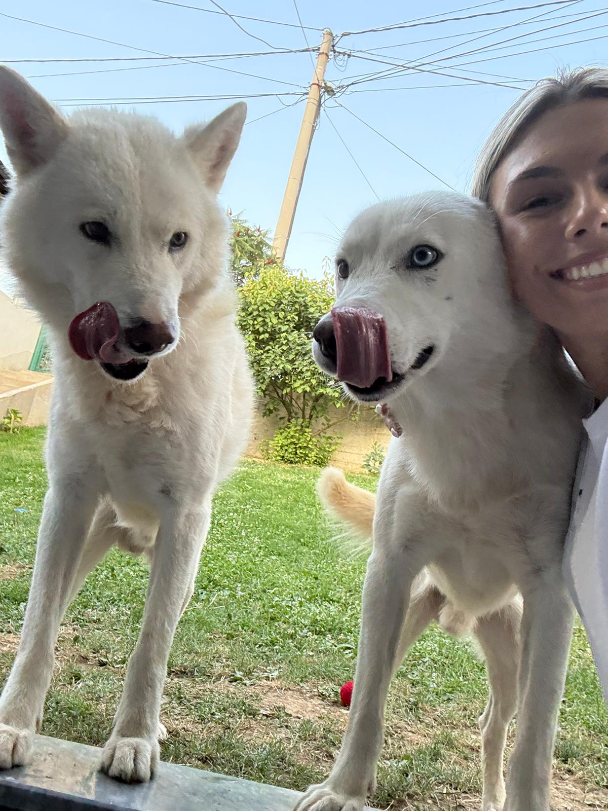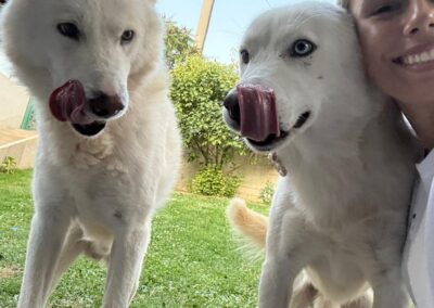 Mars & Kairo are 4 year old white Husky brothers that were left in appalling conditions by their human, who moved away from their home in Bosnia and left them in a cage with no food or water. Thanks to their rescuers, Adna & Markku, the boys were rehomed together in the Netherlands.